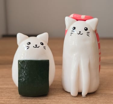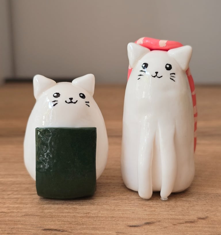 Adorable clay cats with unique styles await.